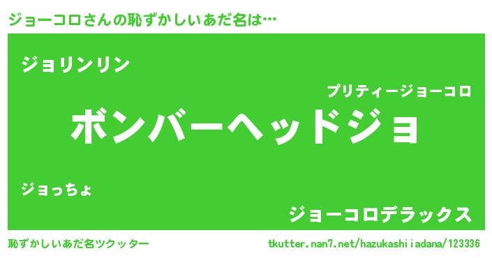 | 男性向けラノベタイトル風あだ名 | 『この素晴らしい世界にジョーコロを!』 |