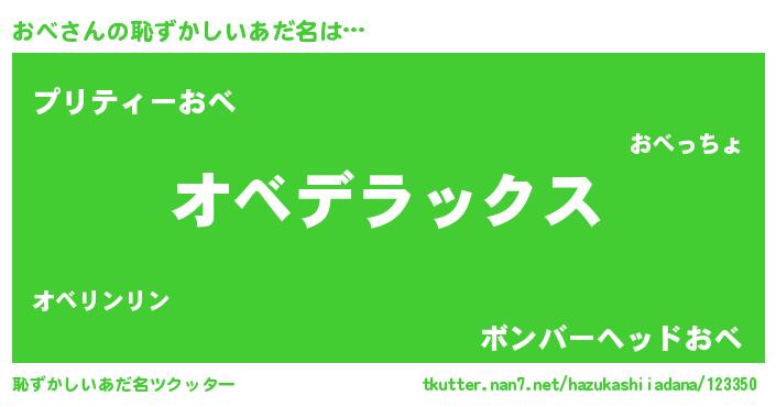 | 意味不明あだ名 | 『自称おべ』『ペロリンおべ』 |