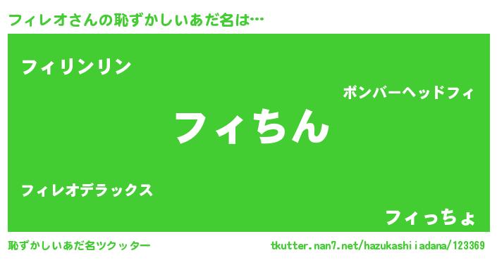 | 意味不明あだ名 | 『永久保存フィレオ』 |