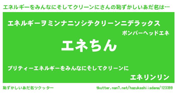 | ヒーロー風カッコイイあだ名 | 『ネオエネルギーヲミンナニソシテクリーンニ』 |
