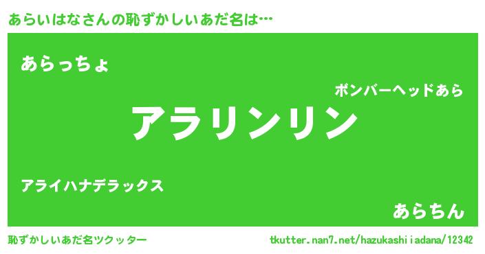| 女子向けラノベタイトル風あだ名 | 『あらいはなは平凡を望む』 |