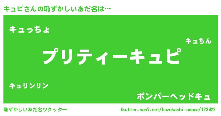| 意味不明あだ名 | 『住所不定無職キュピ(5歳)』 |