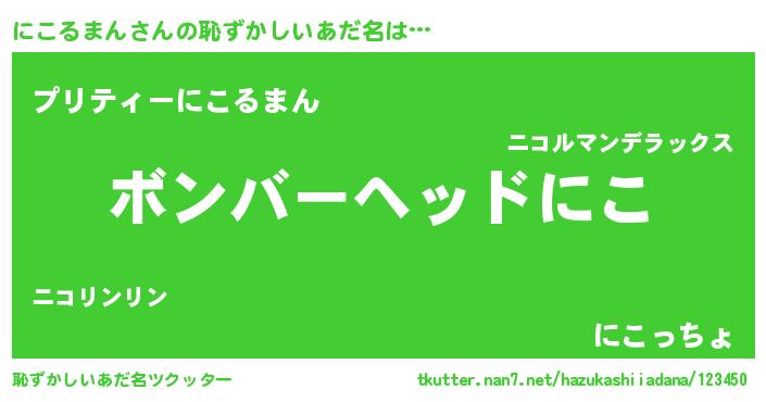 | ヒーロー風カッコイイあだ名 | 『天空の使者にこるまん』『仮面ニコダー』 |