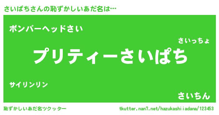 | 意味不明あだ名 | 『ペロリンさいぱち』『永久保存さいぱち』 |