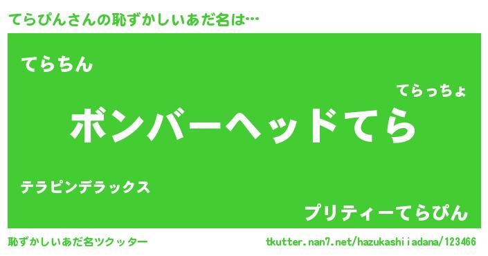 | ヒーロー風カッコイイあだ名 | 『慈愛の使者てらぴん』『ネオテラピン』 |