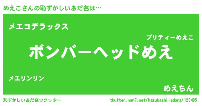 | ヘコむあだ名 | 『めえこ(震え声)』『めえにゅー』 |