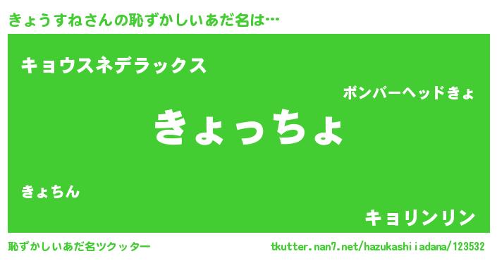 | 意味不明あだ名 | 『きょうすねフォーエバー』 |