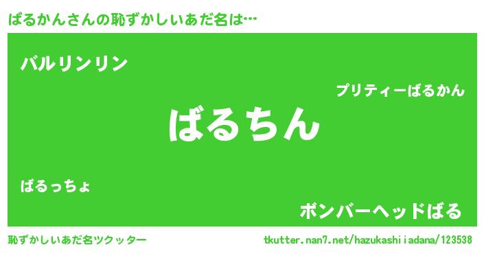 | ヘコむあだ名 | 『ばるかん(小並感)』『ばるを』 |