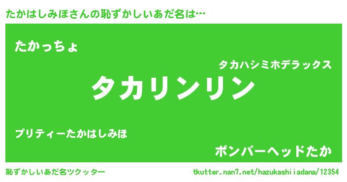 | 女子向けラノベタイトル風あだ名 | 『たかはしみほの卵を拾いまして』 |