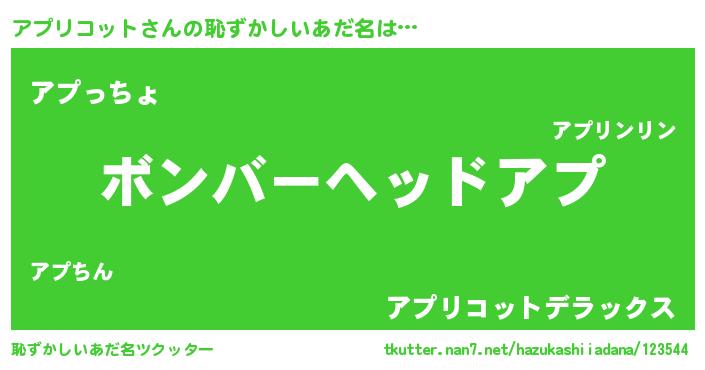 | ヘコむあだ名 | 『なまこ酢』『アプっ子』『アプもー』 |