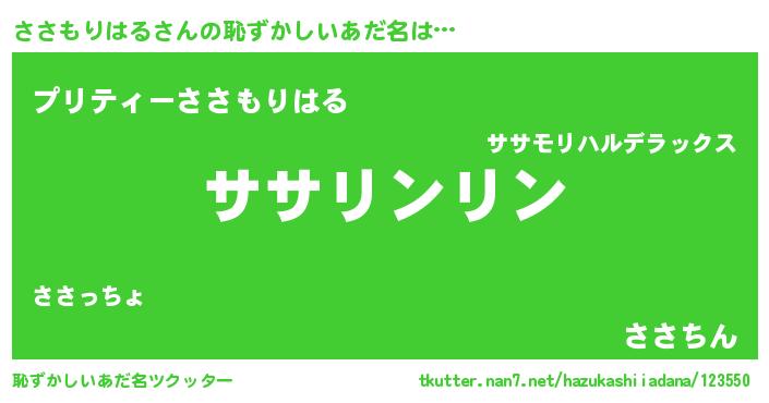 | 意味不明あだ名 | 『とにかく怪しいささもりはる』 |