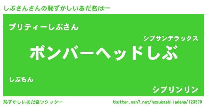 | ヒーロー風カッコイイあだ名 | 『天空の使者しぶさん』『天弓騎士シブ』 |