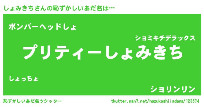 | 意味不明あだ名 | 『ペロリンしょみきち』『自称しょみきち』 |