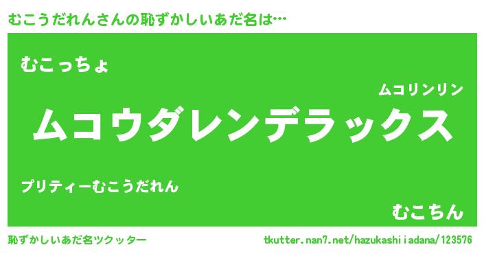 | 意味不明あだ名 | 『自称むこうだれん』 |