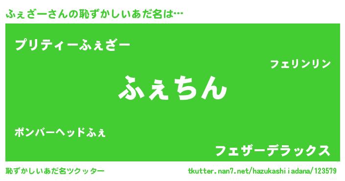 | ヘコむあだ名 | 『ふぇざー(遠い目)』『ふぇふぇ~』 |