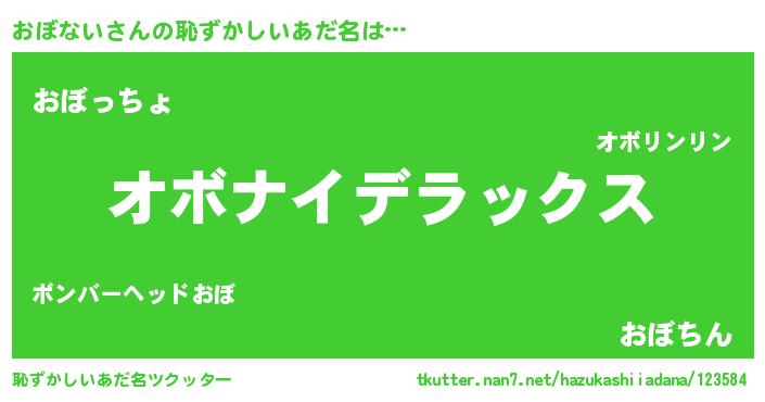 | ヒーロー風カッコイイあだ名 | 『仮面オボダー』『究極戦士オボナイ』 |