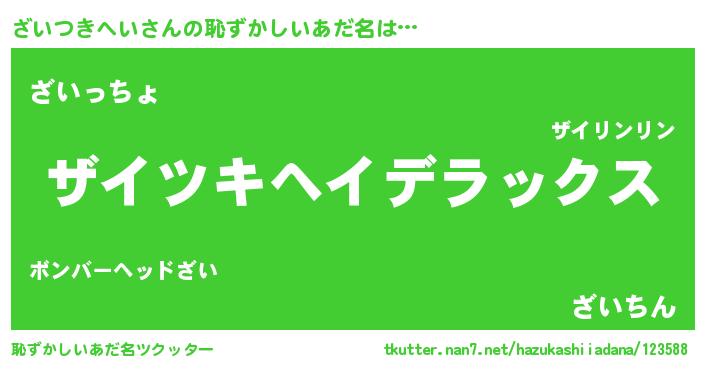| 意味不明あだ名 | 『自称ざいつきへい』 |