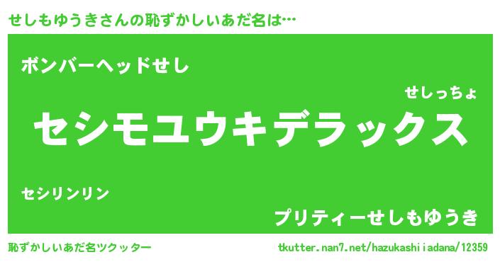 | ヒーロー風カッコイイあだ名 | 『最強戦士セシモユウキ』『仮面セシダー』 |