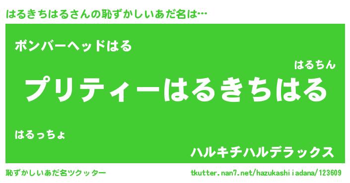 | 男性向けラノベタイトル風あだ名 | 『はるきちはるの憂鬱』 |