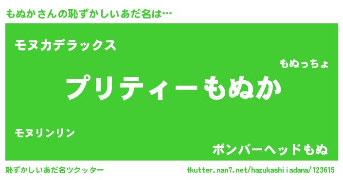 | 胡散臭い通販商品みたいなあだ名 | 『必ず成功する霊験あらたかなお札…その名も「もぬか」』 |