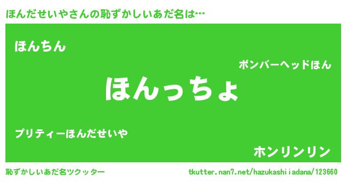 | ヘコむあだ名 | 『酢こんぶ』『ほんだせいや(苦笑)』 |