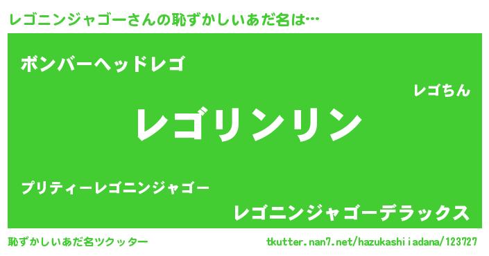 | 男性向けラノベタイトル風あだ名 | 『レゴニンジャゴーの嫁は女の子じゃないと思った?』 |