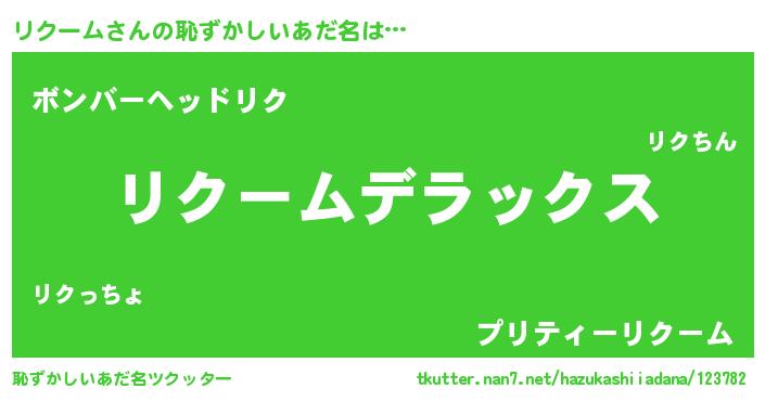 | 意味不明あだ名 | 『自称リクーム』『なめこ科リクーム属』 |