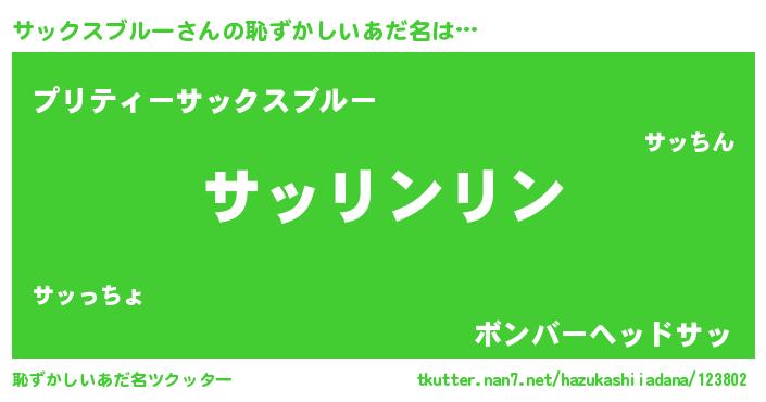 | 男性向けラノベタイトル風あだ名 | 『サックスブルーの嫁は女の子じゃないと思った?』 |