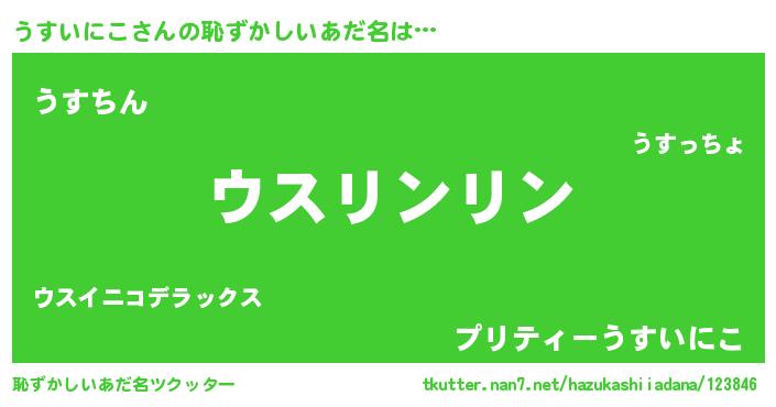 | 意味不明あだ名 | 『とにかく怪しいうすいにこ』 |