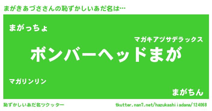 | 意味不明あだ名 | 『住所不定無職まがきあづさ(95歳)』 |