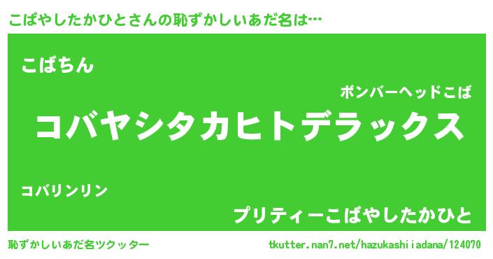 | ヘコむあだ名 | 『こばやしたかひと(震え声)』『こばっ子』 |