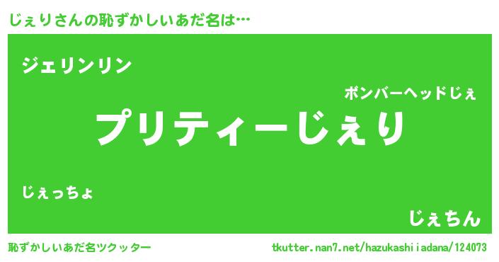 | 男性向けラノベタイトル風あだ名 | 『じぇりの憂鬱』 |