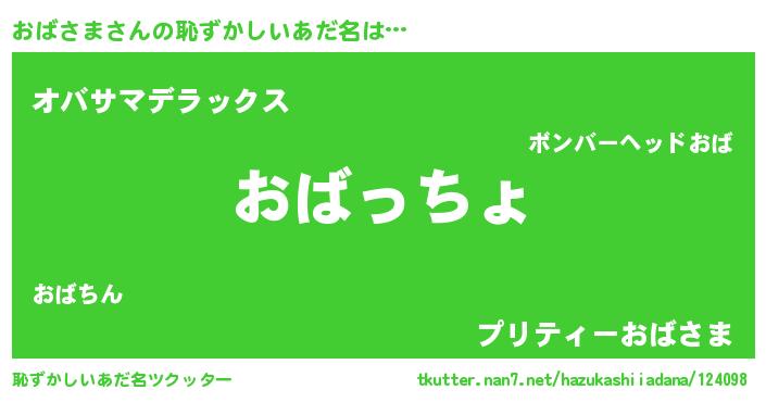| 2回繰り返すあだ名 | 『おおばば』『むんむん』『おばおば』 |