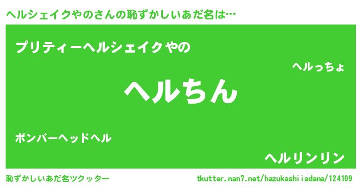 | 胡散臭い通販商品みたいなあだ名 | 『絶対に幸福をもたらす健康食品…その名も「ヘルシェイクやの」』 |