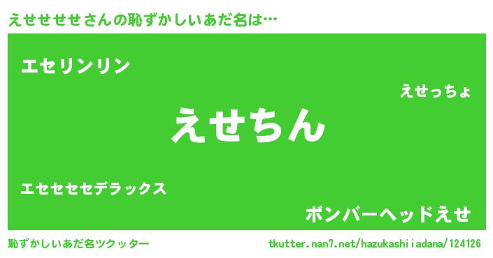 | 意味不明あだ名 | 『永久保存えせせせせ』『自称えせせせせ』 |