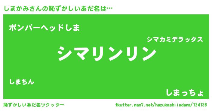 | 意味不明あだ名 | 『とにかく怪しいしまかみ』 |