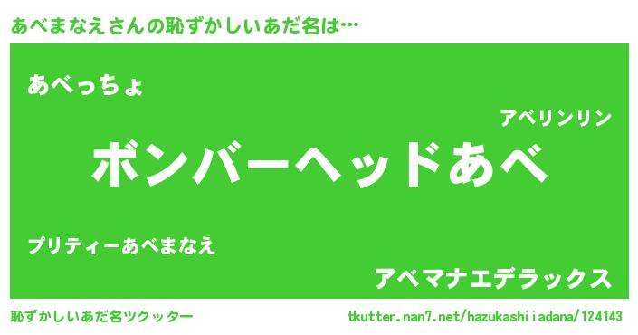 | 欧米人風あだ名 | 『あべまなえ・ステッグマイヤー』 |
