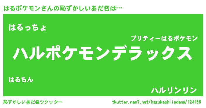 | 男性向けラノベタイトル風あだ名 | 『Re:はるポケモンから始める異世界生活』 |