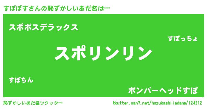 | 男性向けラノベタイトル風あだ名 | 『転生したらすぽぼすだった件』 |