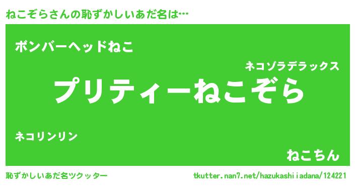 | ヘコむあだ名 | 『ねこもー』『ねこぞら(笑)』 |