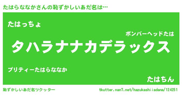 | 意味不明あだ名 | 『自称たはらななか』 |