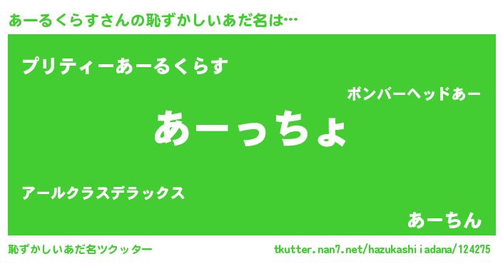 | 料理風あだ名 | 『あーるくらすのカルパッチョ風』 |