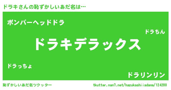 | 男性向けラノベタイトル風あだ名 | 『Re:ドラキから始める異世界生活』 |