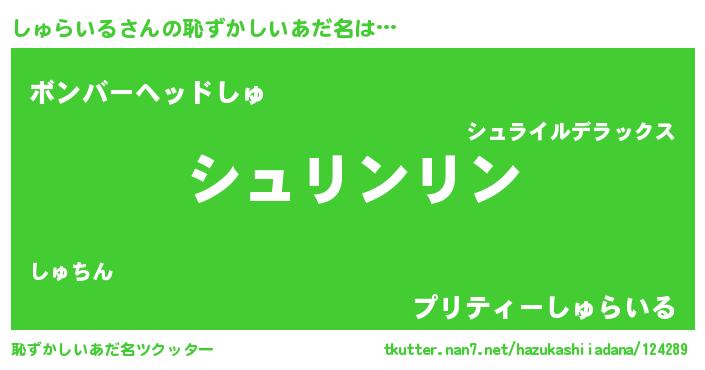 | ヒーロー風カッコイイあだ名 | 『幻影騎士シュ』『正義の使者しゅらいる』 |