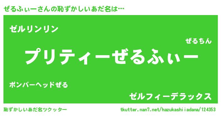 | 男性向けラノベタイトル風あだ名 | 『ぜるふぃーに滅ぼされるだけの簡単なお仕事です』 |