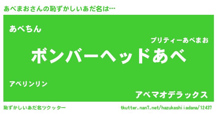 | ヘコむあだ名 | 『あべまお(遠い目)』『あべもー』 |