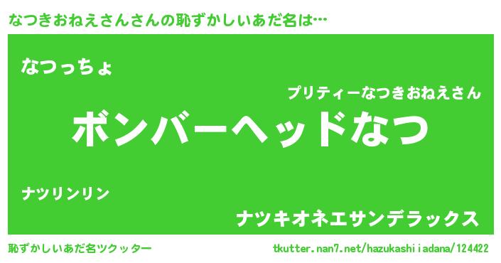 | ポケモン風あだ名 | 『ナックウザ』『ナツキダネ』 |