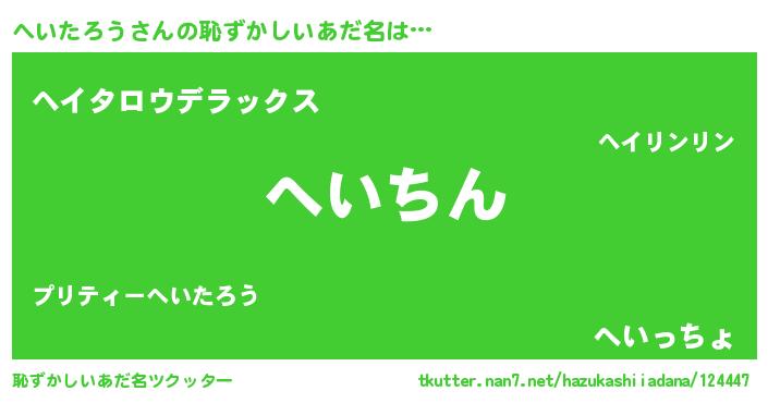 | 意味不明あだ名 | 『永久保存へいたろう』『自称へいたろう』 |