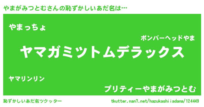| 意味不明あだ名 | 『自称やまがみつとむ』 |