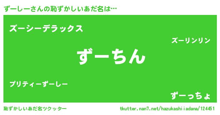 | 意味不明あだ名 | 『永久保存ずーしー』『自称ずーしー』 |